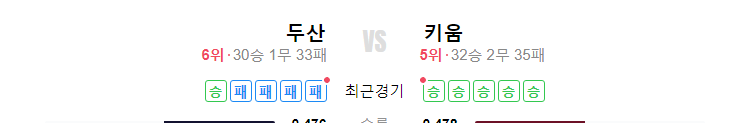| 두산 | VS | 키움 |