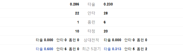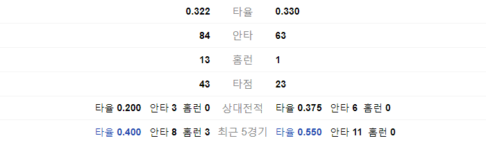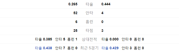 | 0.261 | 타율 | 0.259 |
