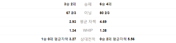 박세웅는 3승 2패를 기록중이며, 67 2/3 이닝을 던졌습니다. 평균 자책은 2.93 입니다. 켈리은 6승 4패를 기록 중이며, 80 2/3 이닝을 던졌습니다. 평균자책은 4.69 입니다.