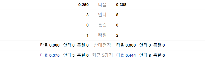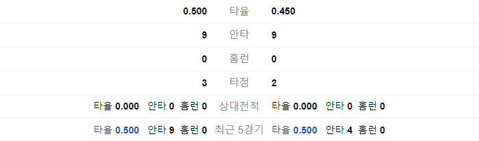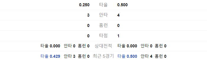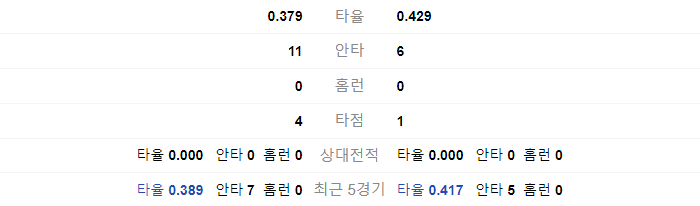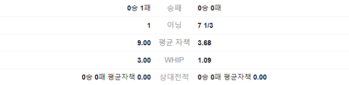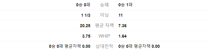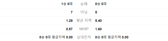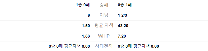 | 10 | 한화 | 1 | 6 | 0 | 0.143 | 4.5 |
